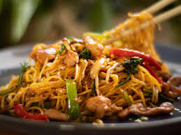s restovanou zeleninou, kachním masem a teriyaki omáčkou ( , , )