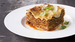 s boloňskou omáčkou, smetanový bešamel, sýr grana padano, bazalkové pesto ( , , )