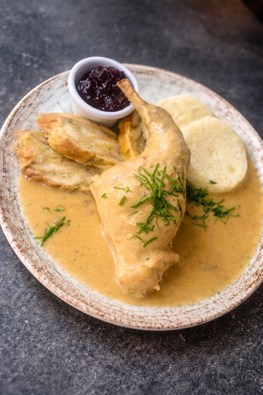 na smetaně, brusinky, karlovarské a houskové knedlíky ( , , , )